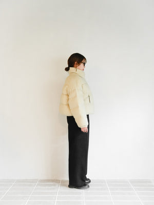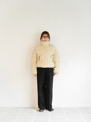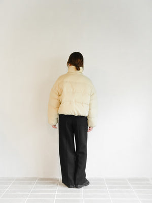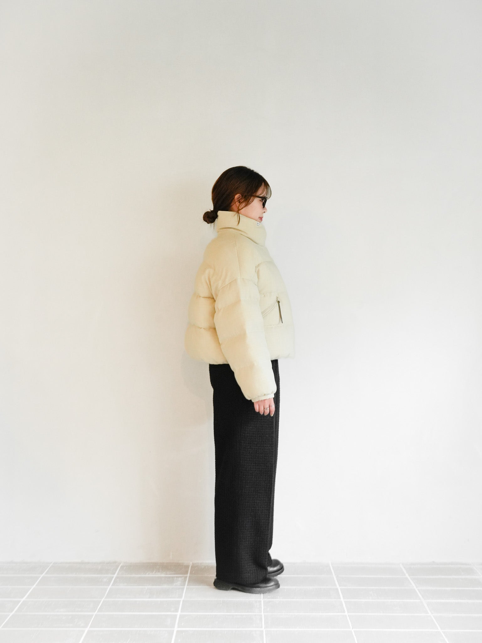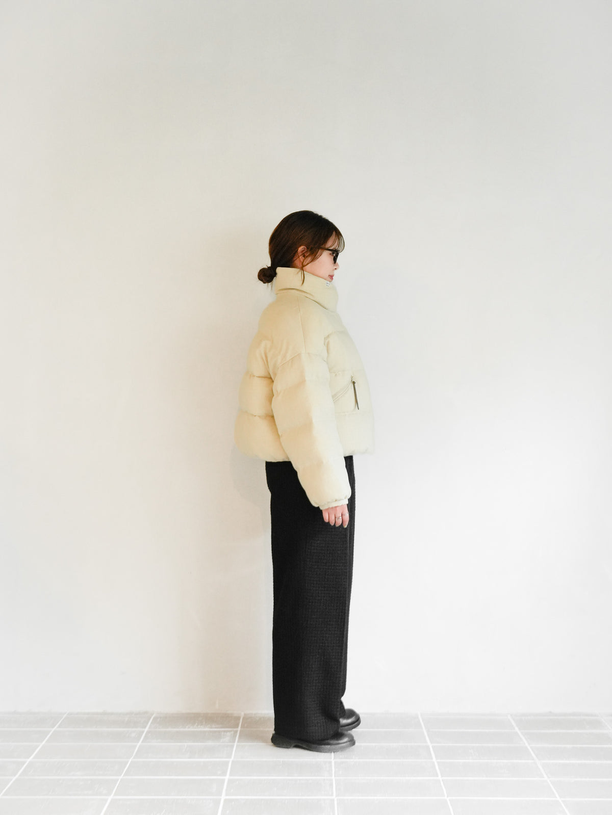 冬らしい温かさ溢れるジャケットが主役のスタイリング。シンプルなブラックパンツと合わせ、ボリューム感のバランスをとった防寒スタイル。スポーティすぎない大人の冬カジュアルコーデです。