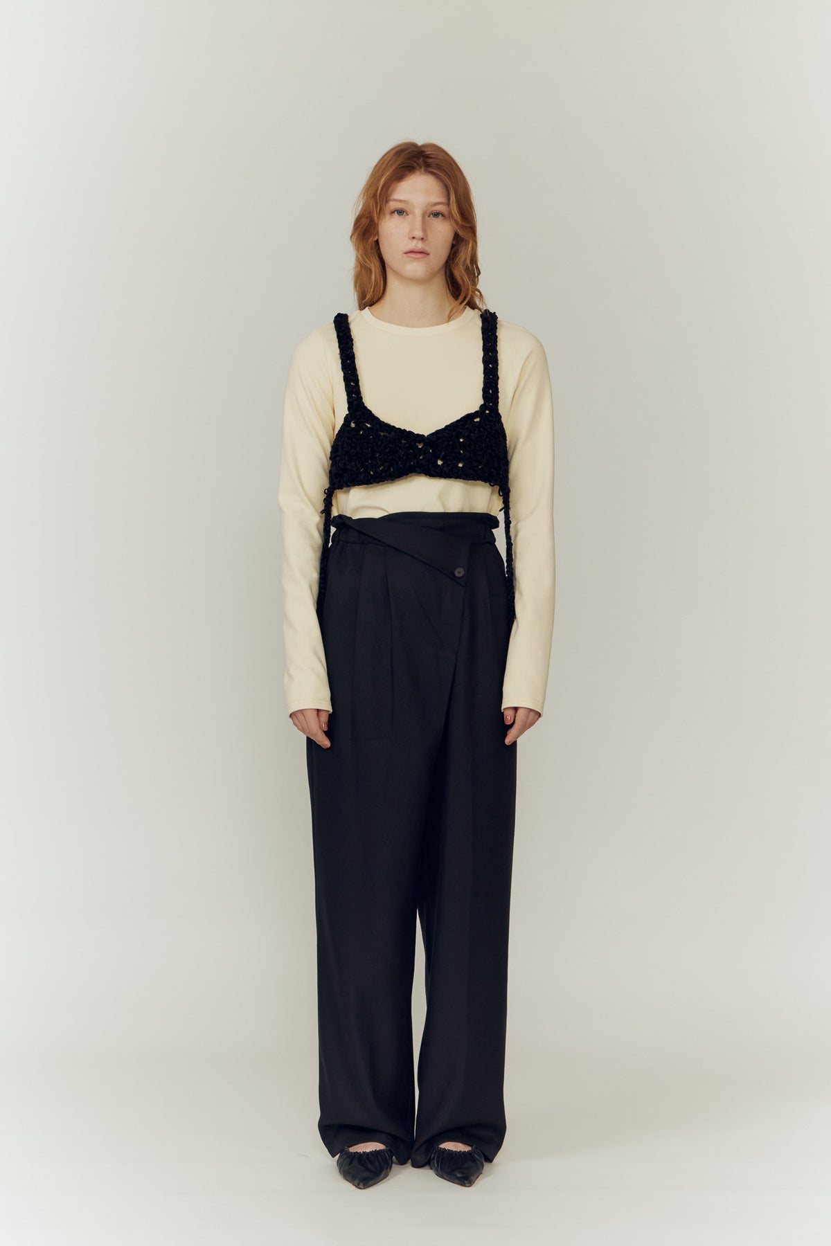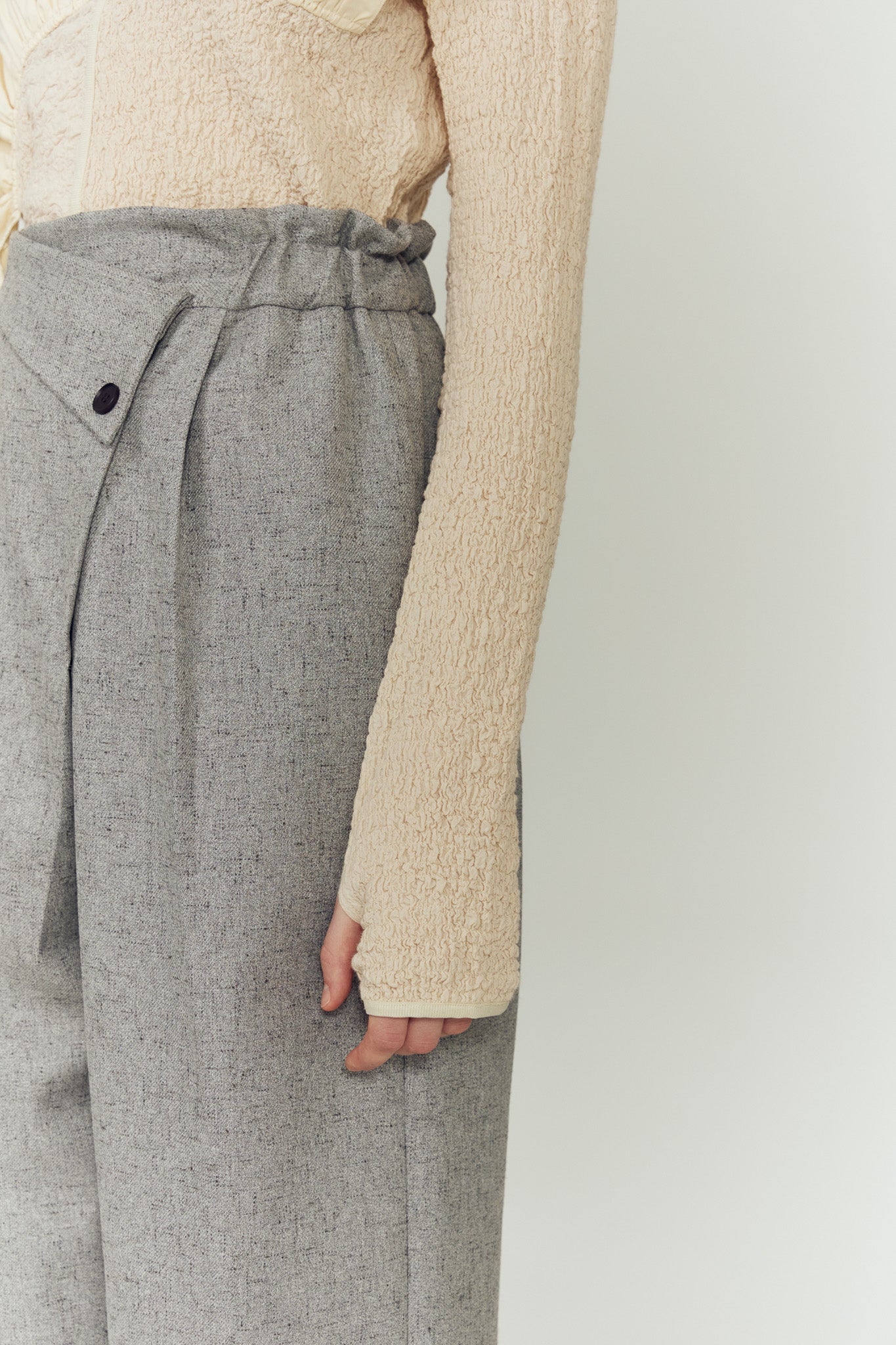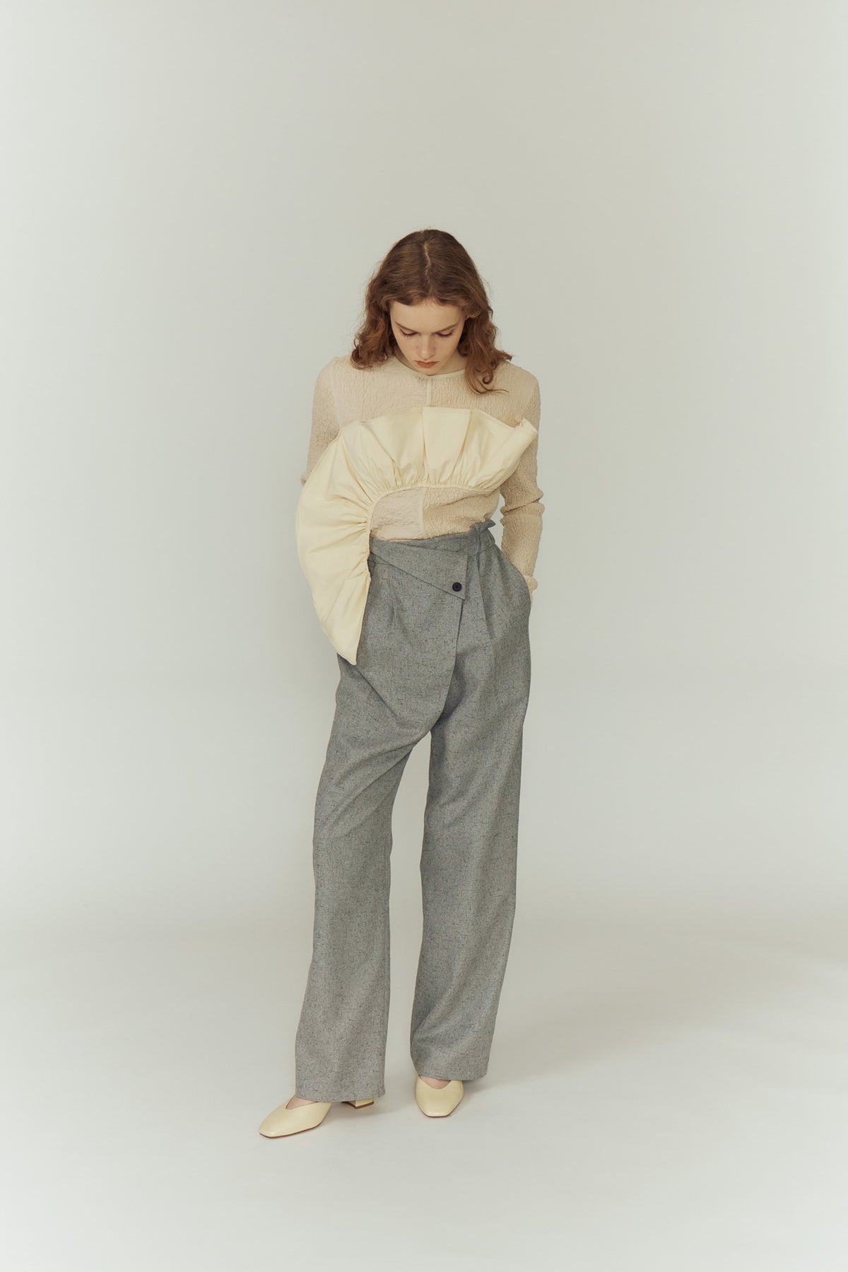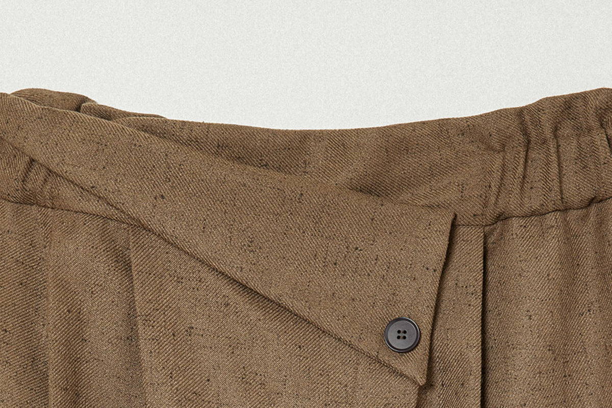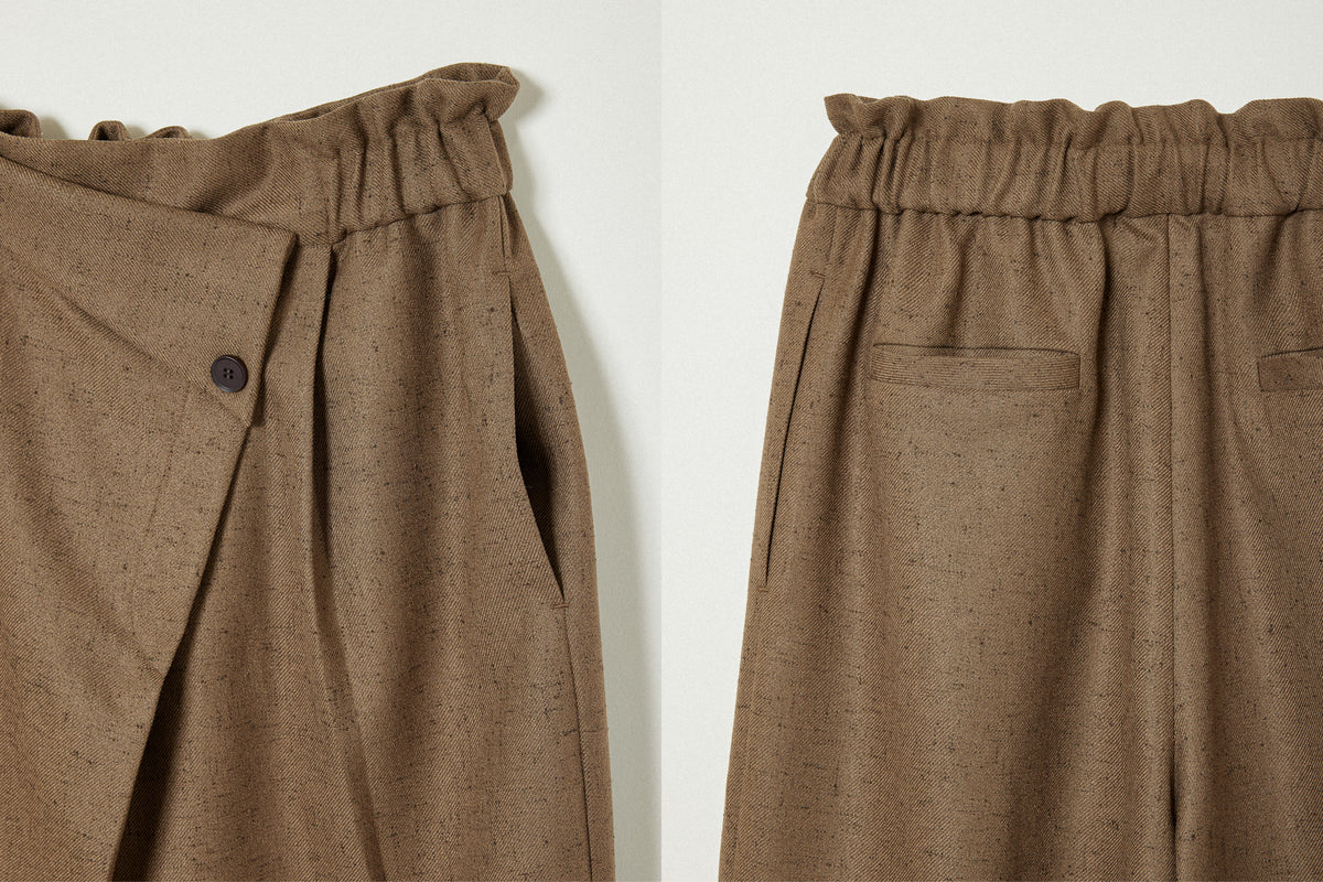 Moderately wide silhouette and generous tucks add depth to your styling.