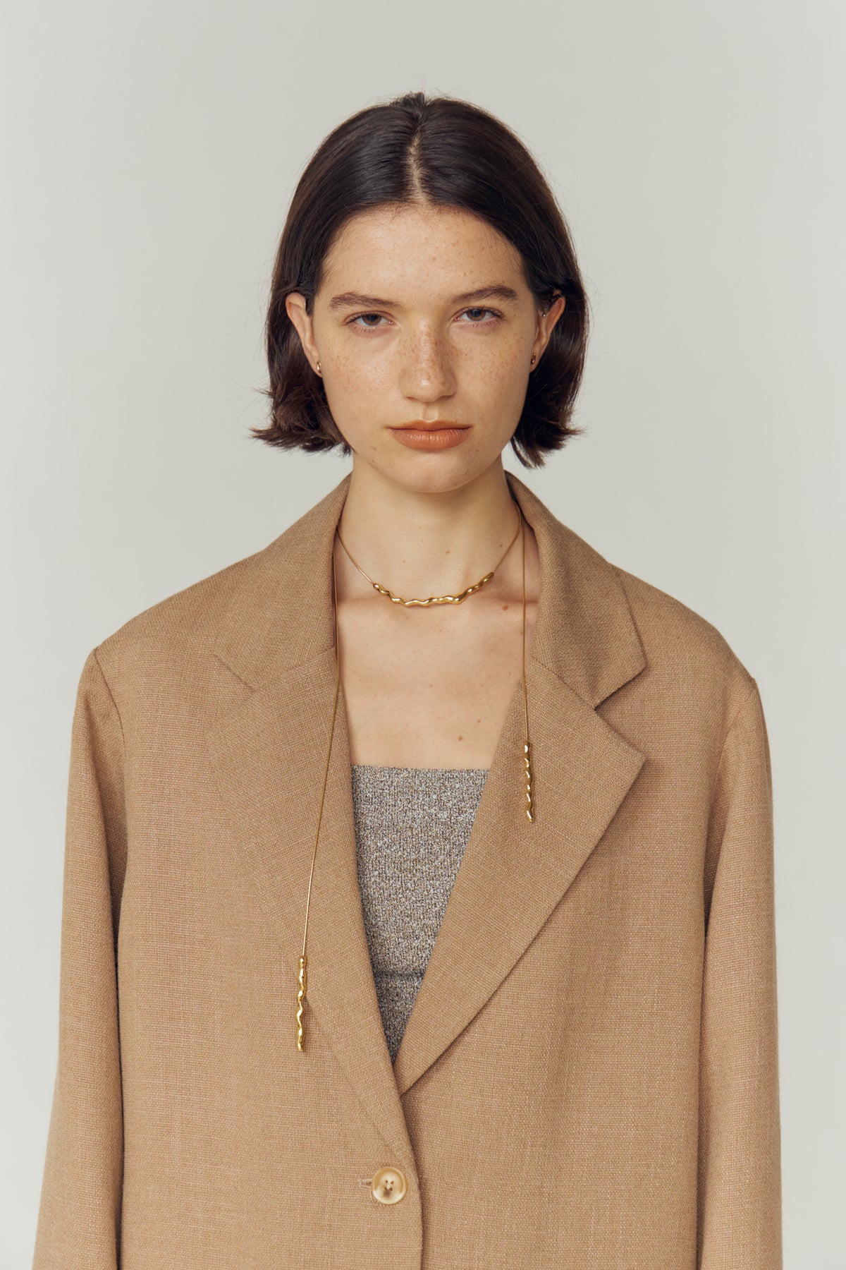 左右非対称のラインと、自在なアレンジができるラリエットとして生まれた。