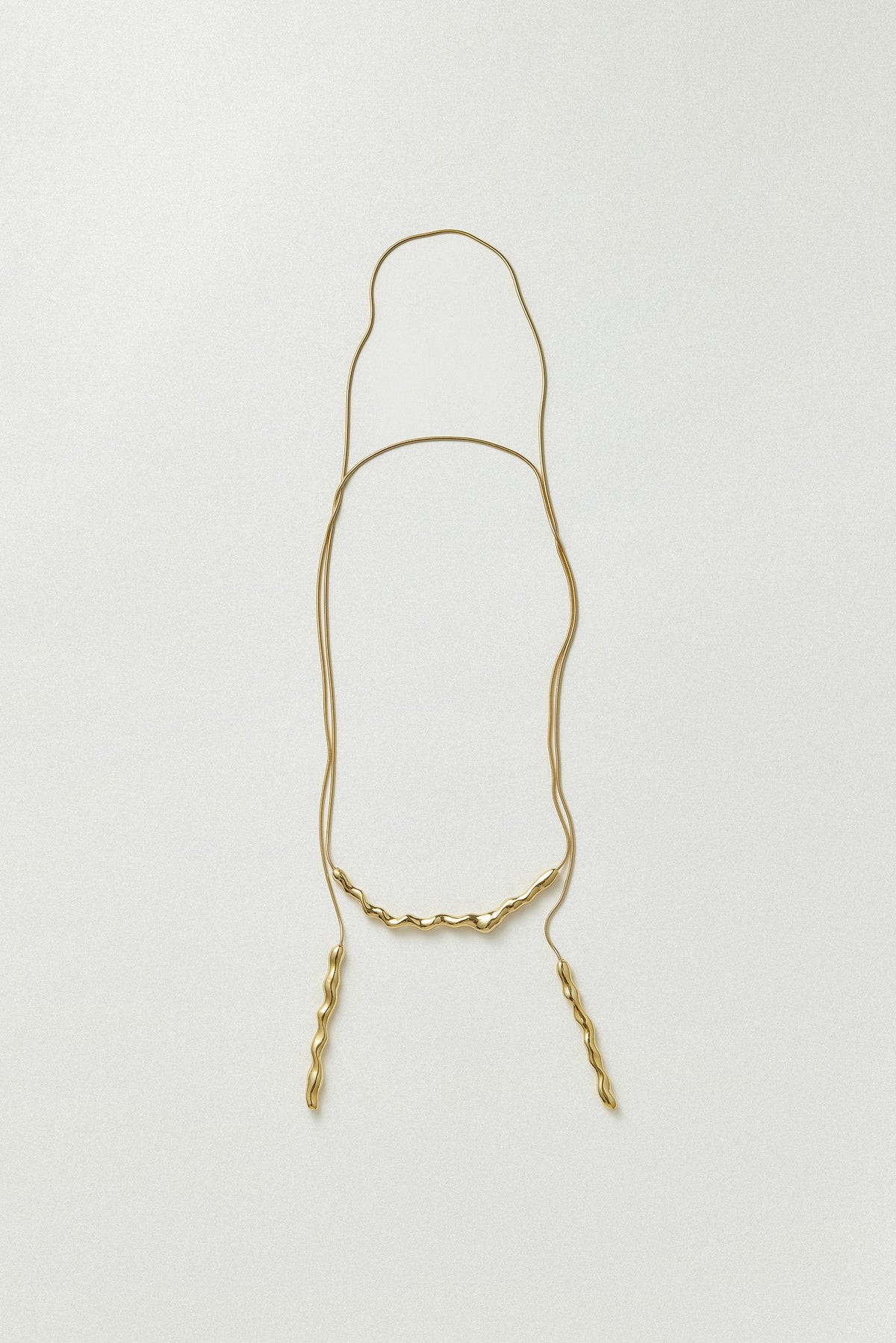滝の流れからインスピレーションを受けた、さまざまなアレンジを楽しめるラリエットタイプのネックレス。