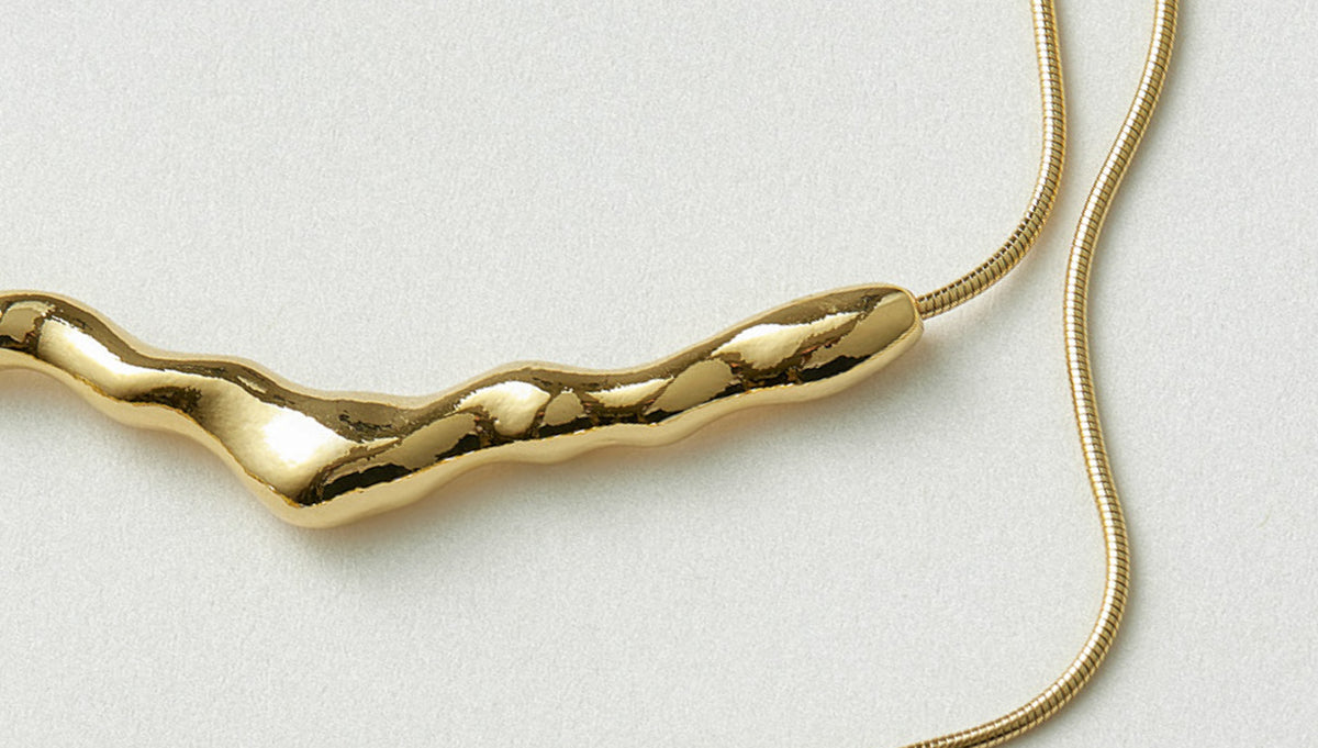 チェーンにはスネークタイプを採用し、なめらかな光沢とモードな印象を兼ね備えました。