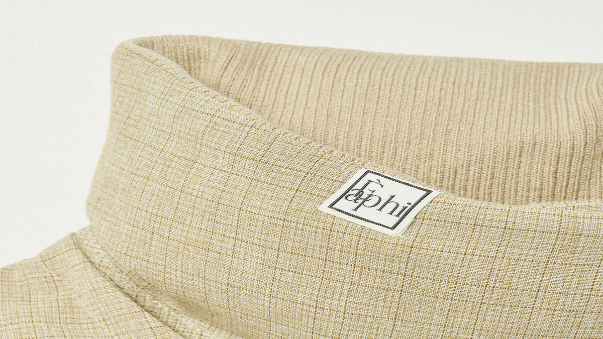 さらに襟元には、Èaphiのロゴマークをあしらったネームタグをさりげなく配置。