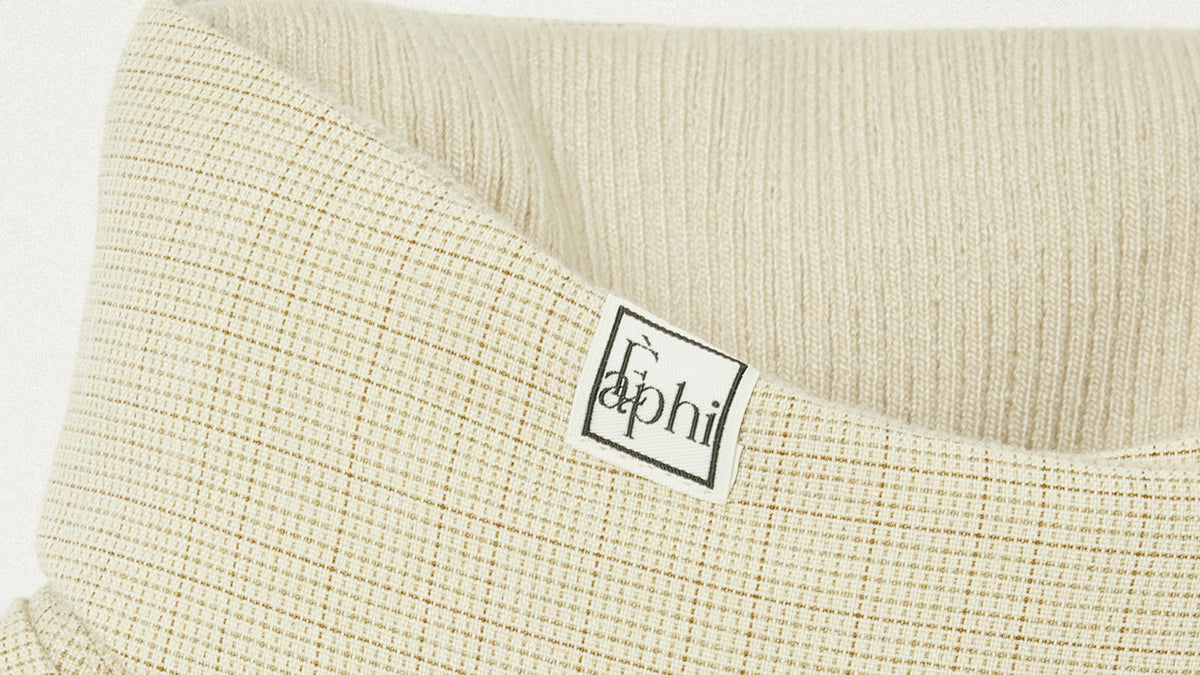 さらに襟元には、Èaphiのロゴマークをあしらったネームタグをさりげなく配置。