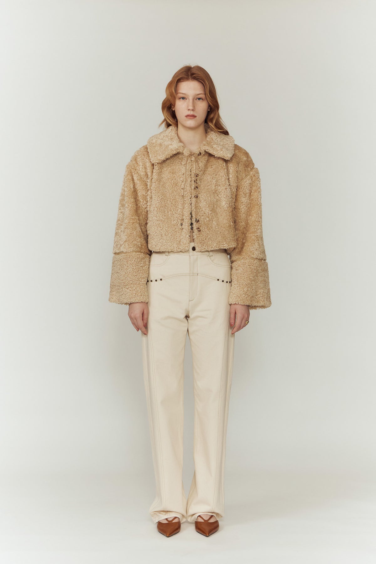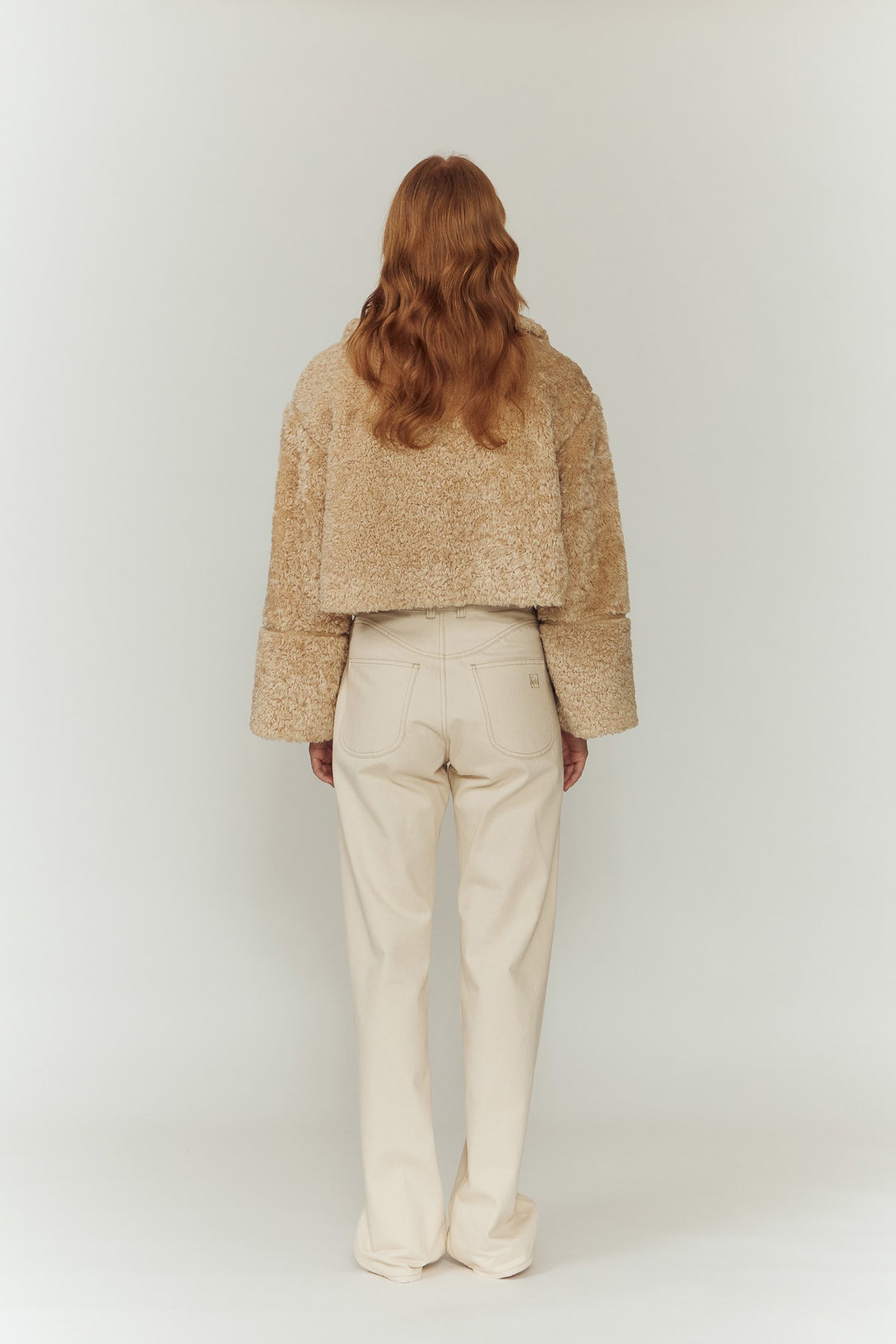 毛足がカールしたプードルのような表情豊かなエコファージャケット。