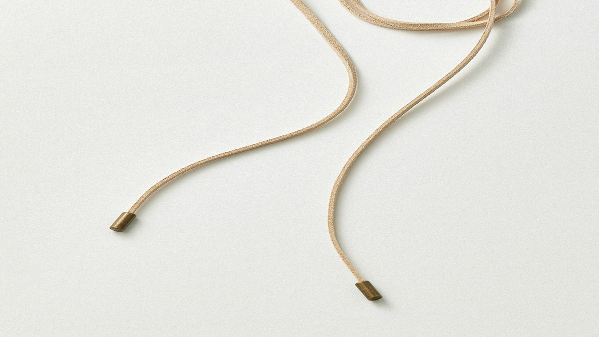 やや大きめの襟は、スタンドカラーとしても着用可能。開けて着る際には、首元のスエードコードがさりげないアクセントになります。