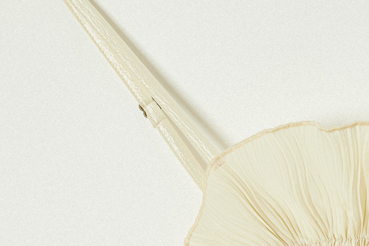 艶やかな肩紐は、陽の光を受けてきらめく水面を思わせ、