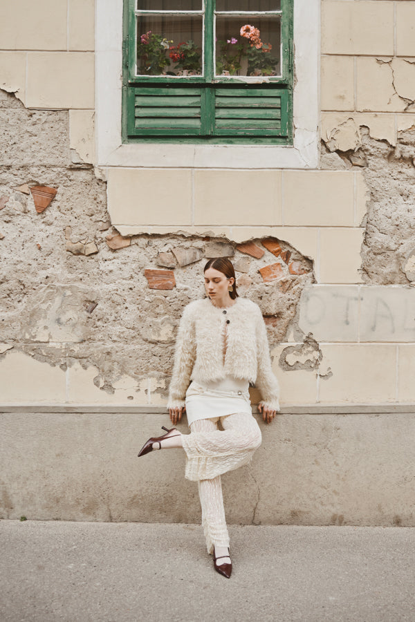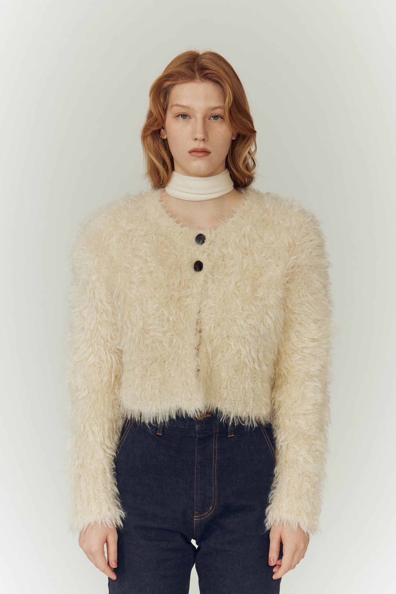 定番のシャギーカーディガンを、今季はショート丈仕様でよりラフに、軽やかに。