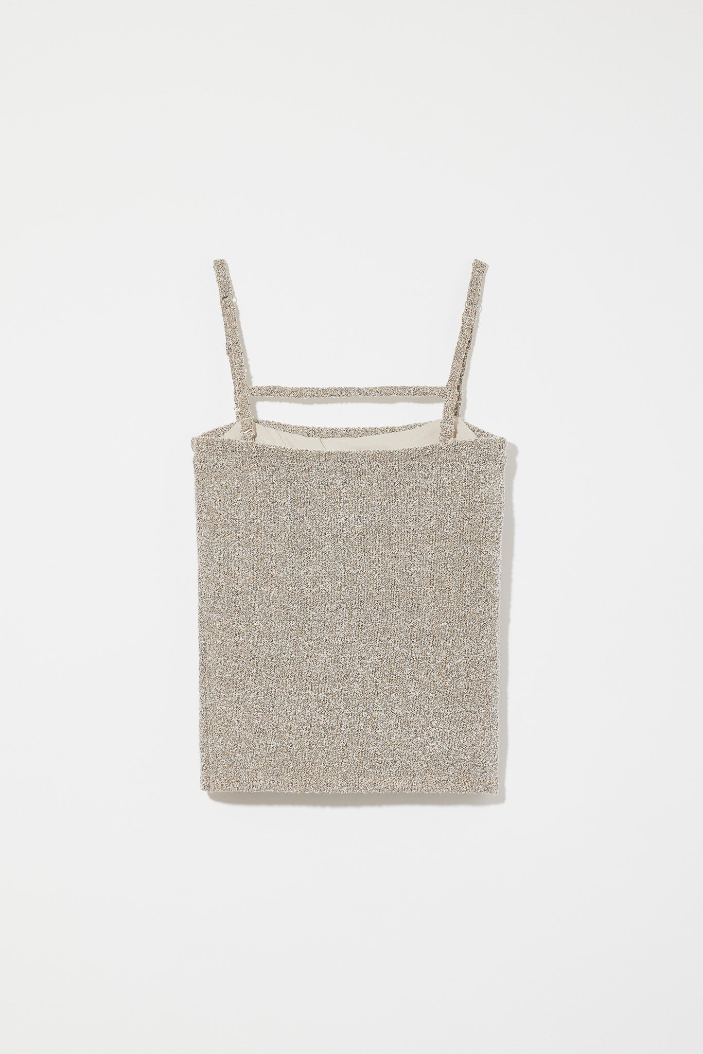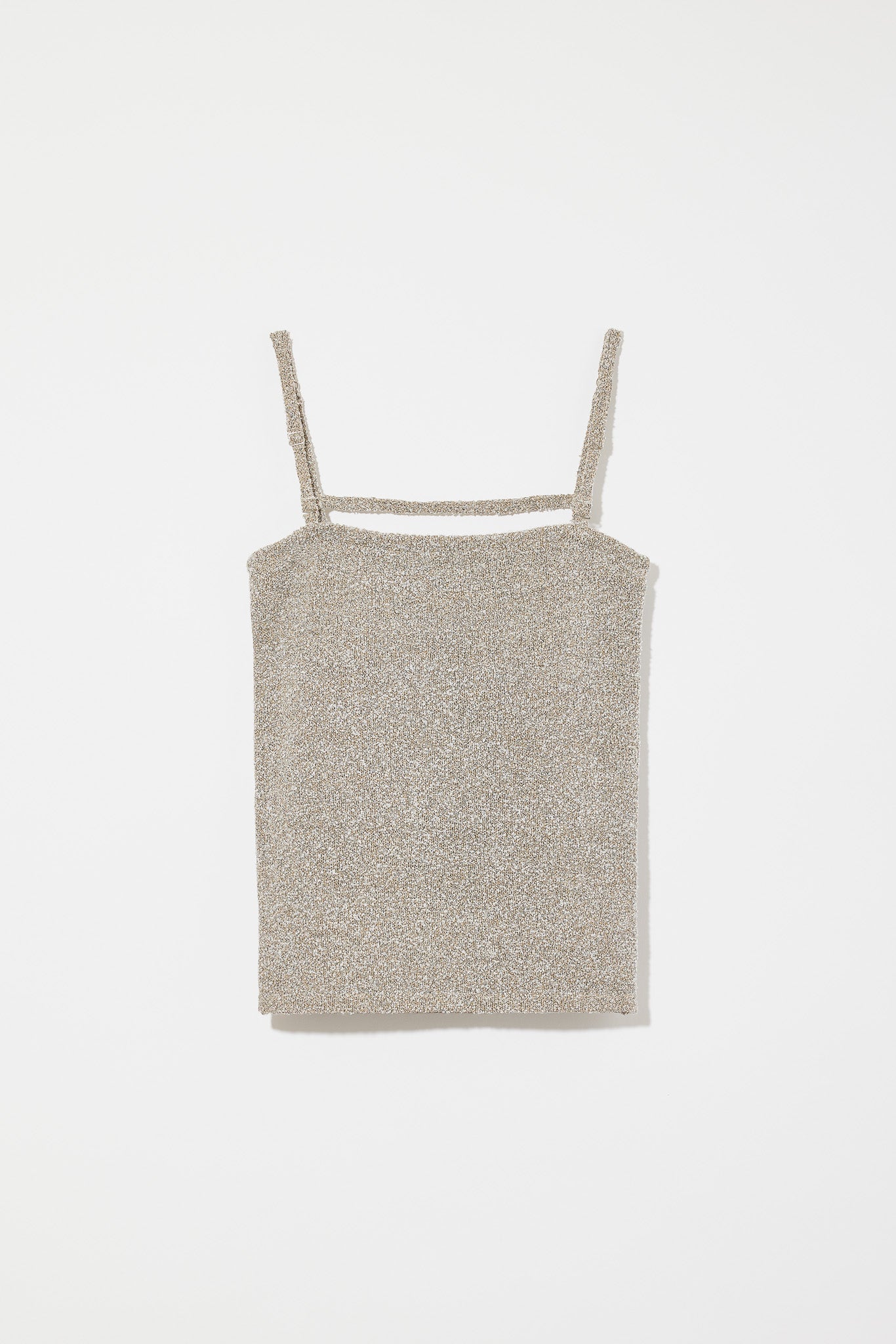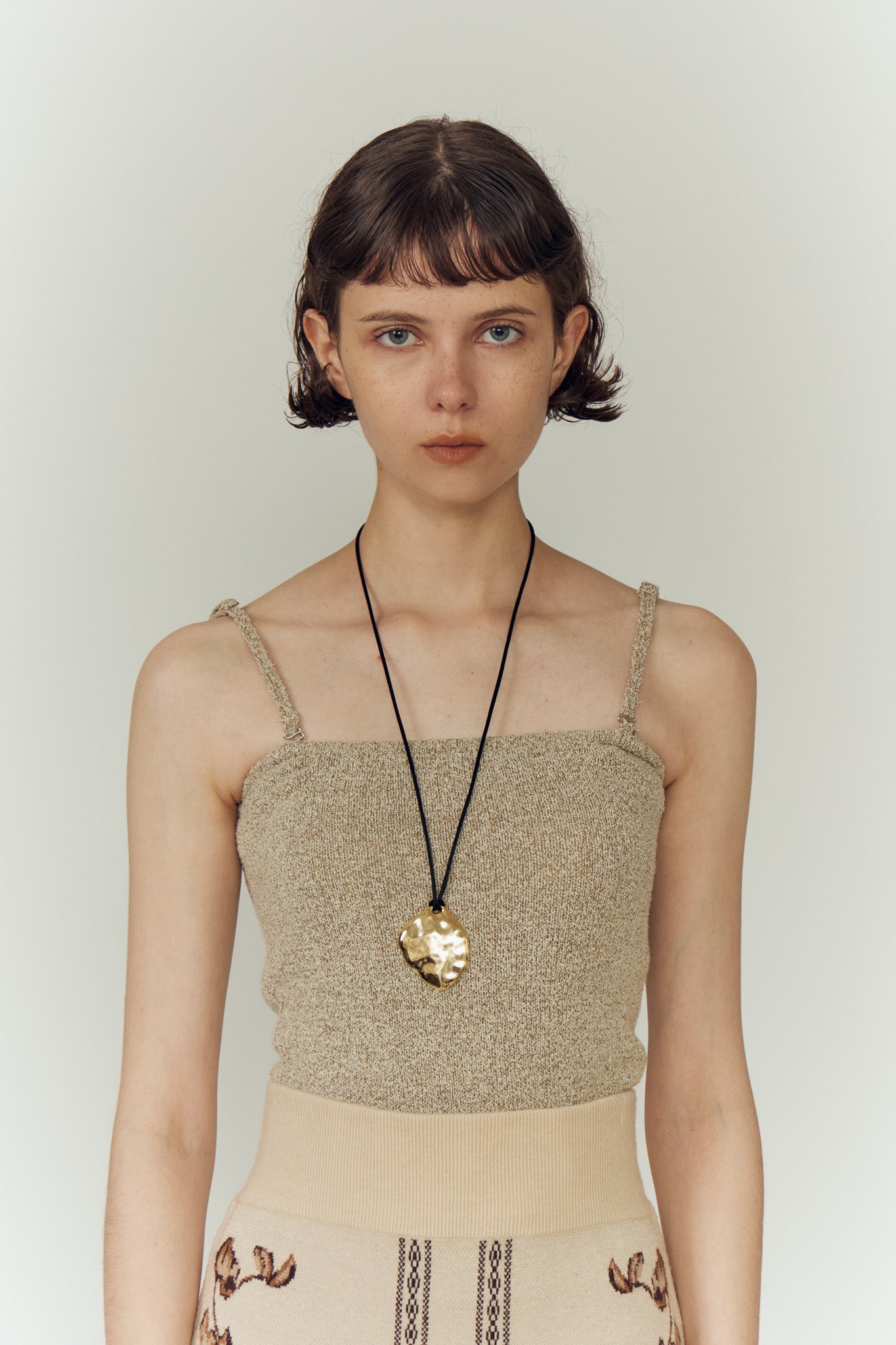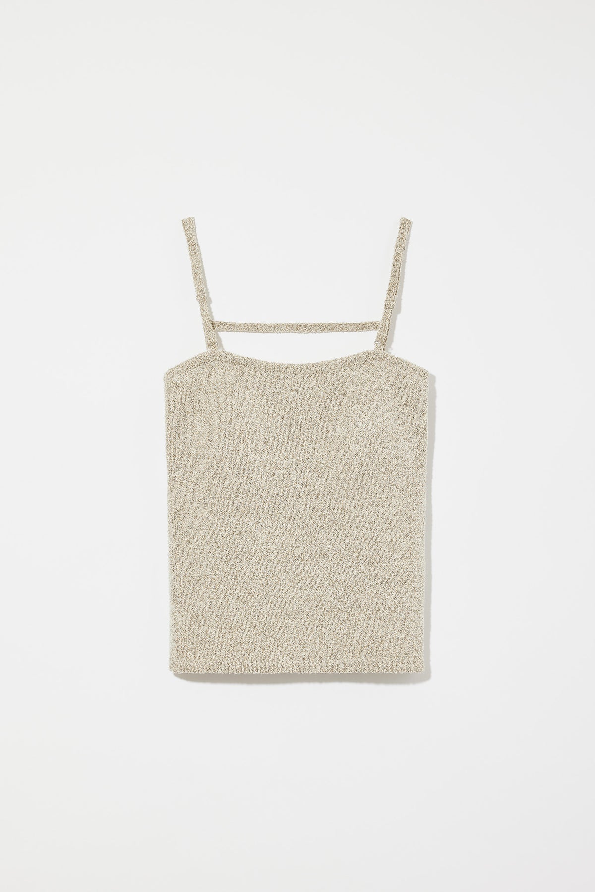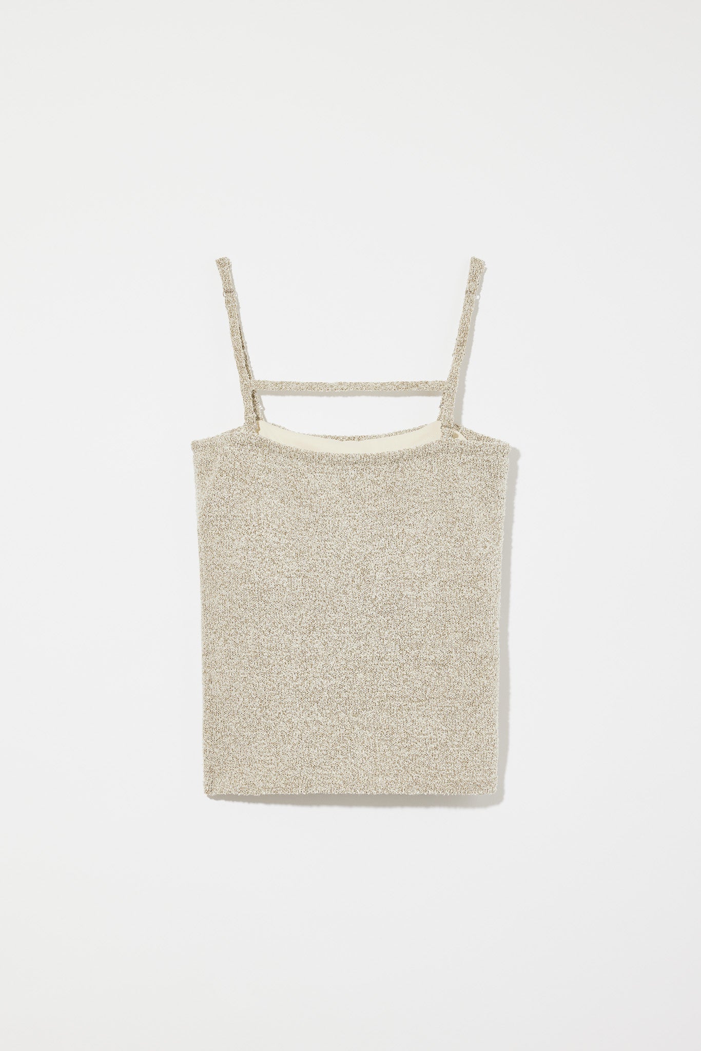 凹凸感のあるブークレ糸を撚り合わせ、表情豊かなテクスチャーと絶妙な色の重なりを楽しめるサマーニットキャミソール。