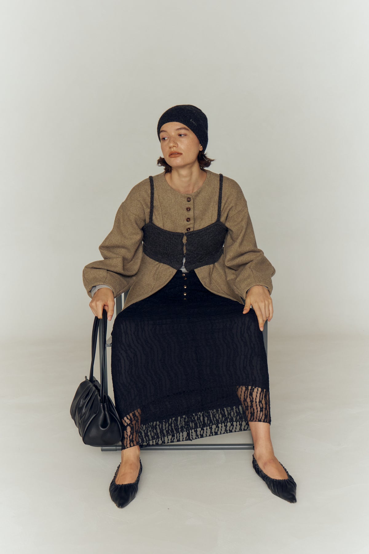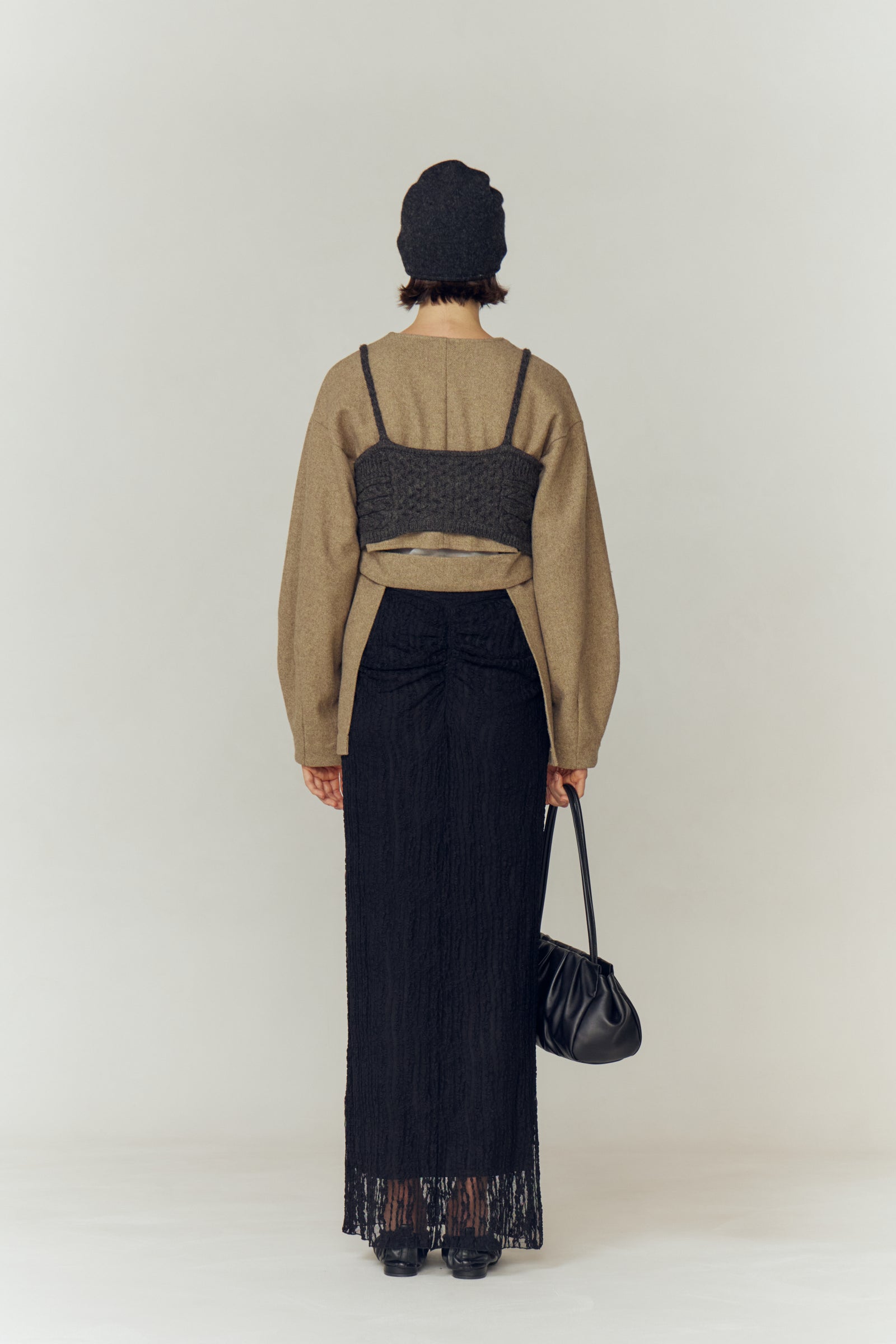 編み地を細やかに切り替えることで、立体感と繊細な表情をプラス。