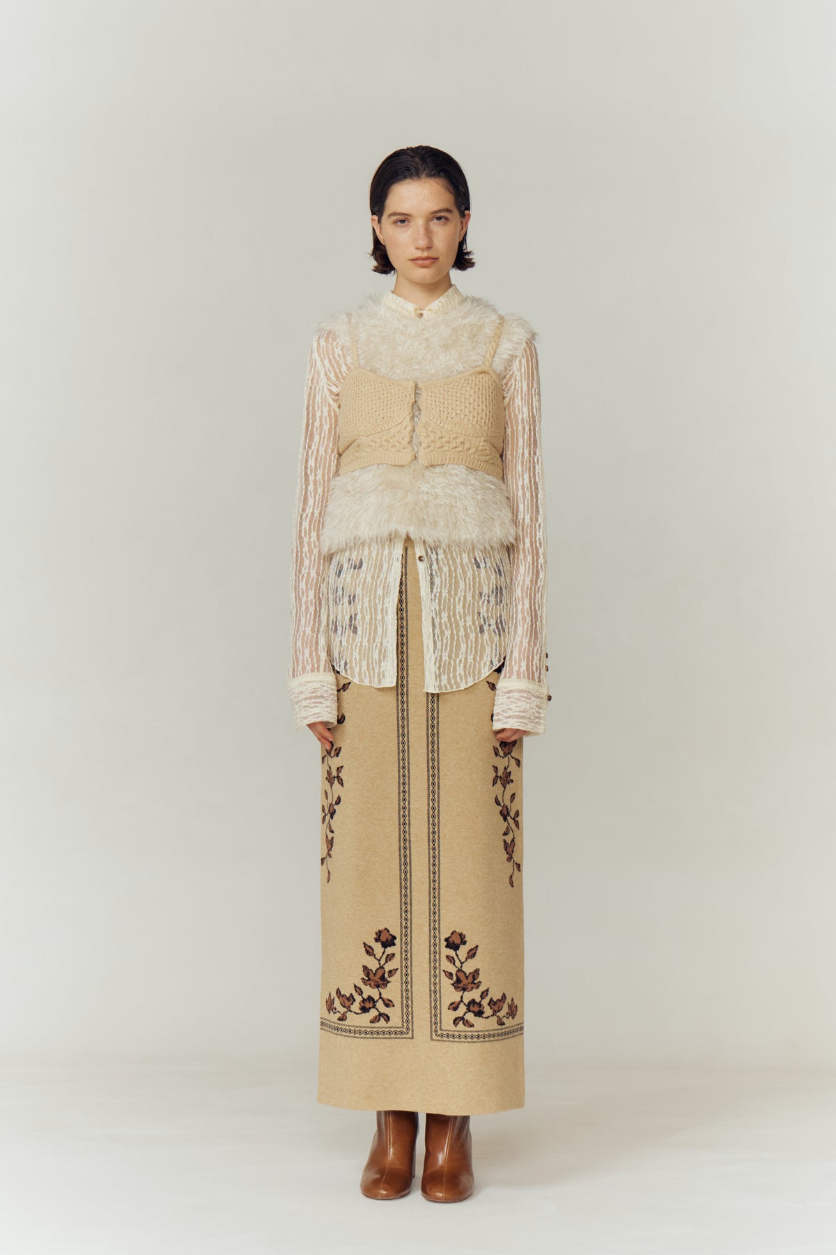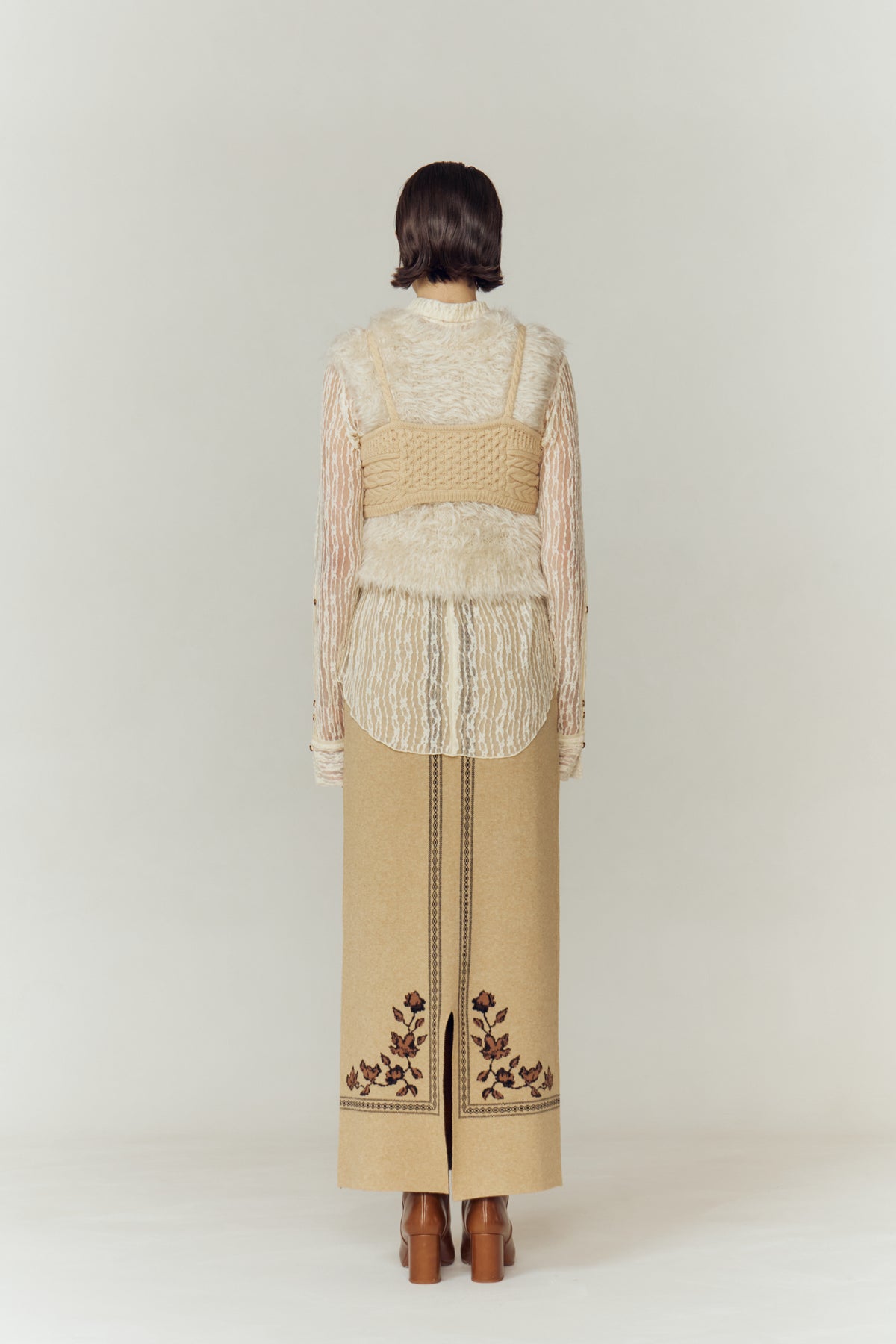 MIX PATTERN KNIT BUSTIERは、その美の象徴を現代に再解釈した一枚。