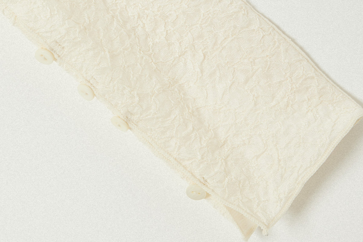 さらに、ボタンの留め位置によってギャザーの量を調整することで、遊び心のあるアレンジも楽しめます。