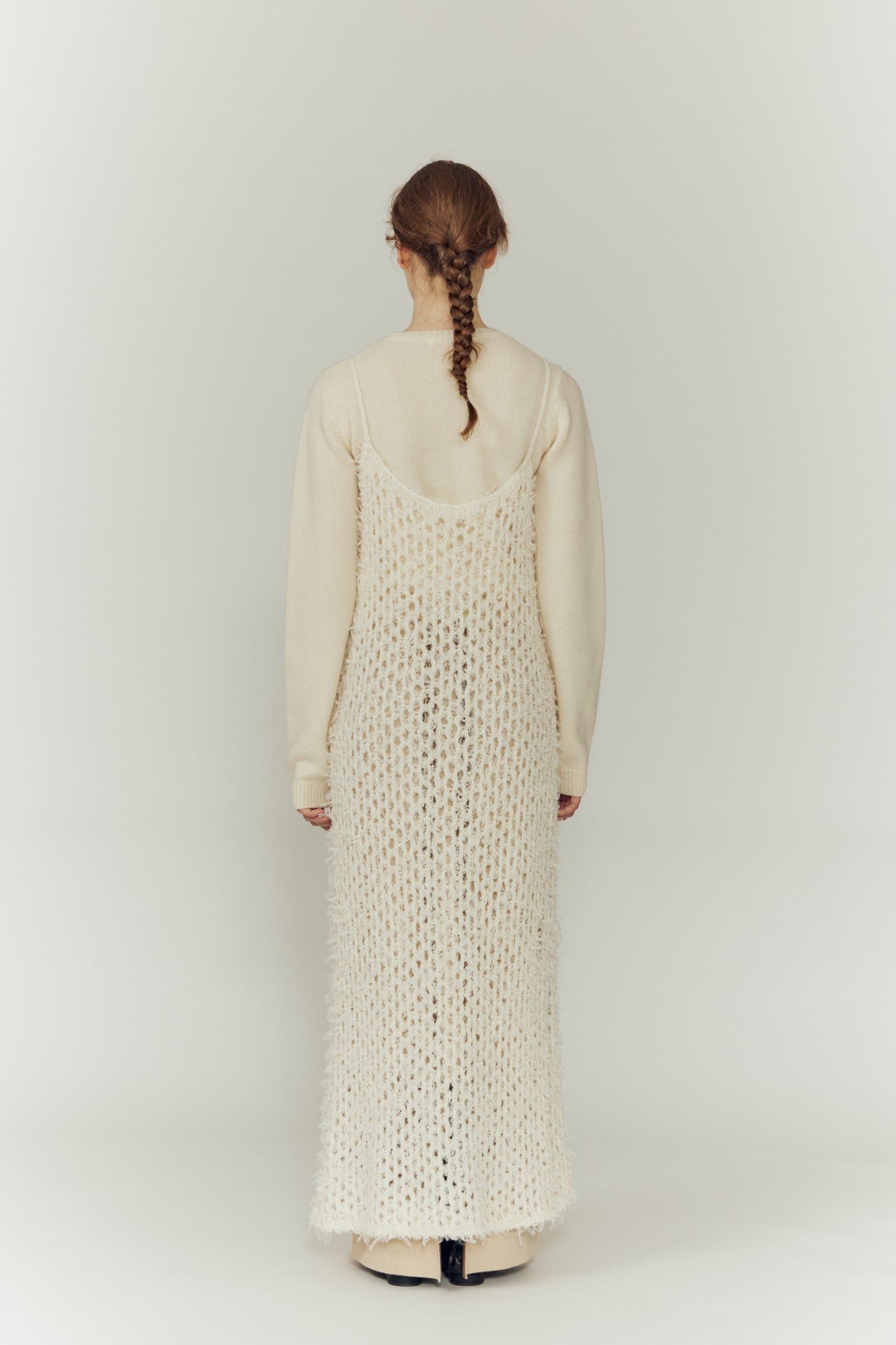 水面のような揺らぎを、編み地のリズムで表現したニットワンピース。