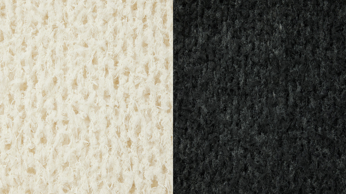 異なる2種類の糸を組み合わせることで、透け感のある軽やかな編み地に立体感をプラス。