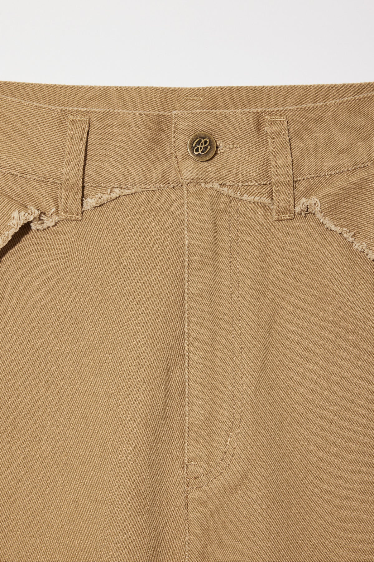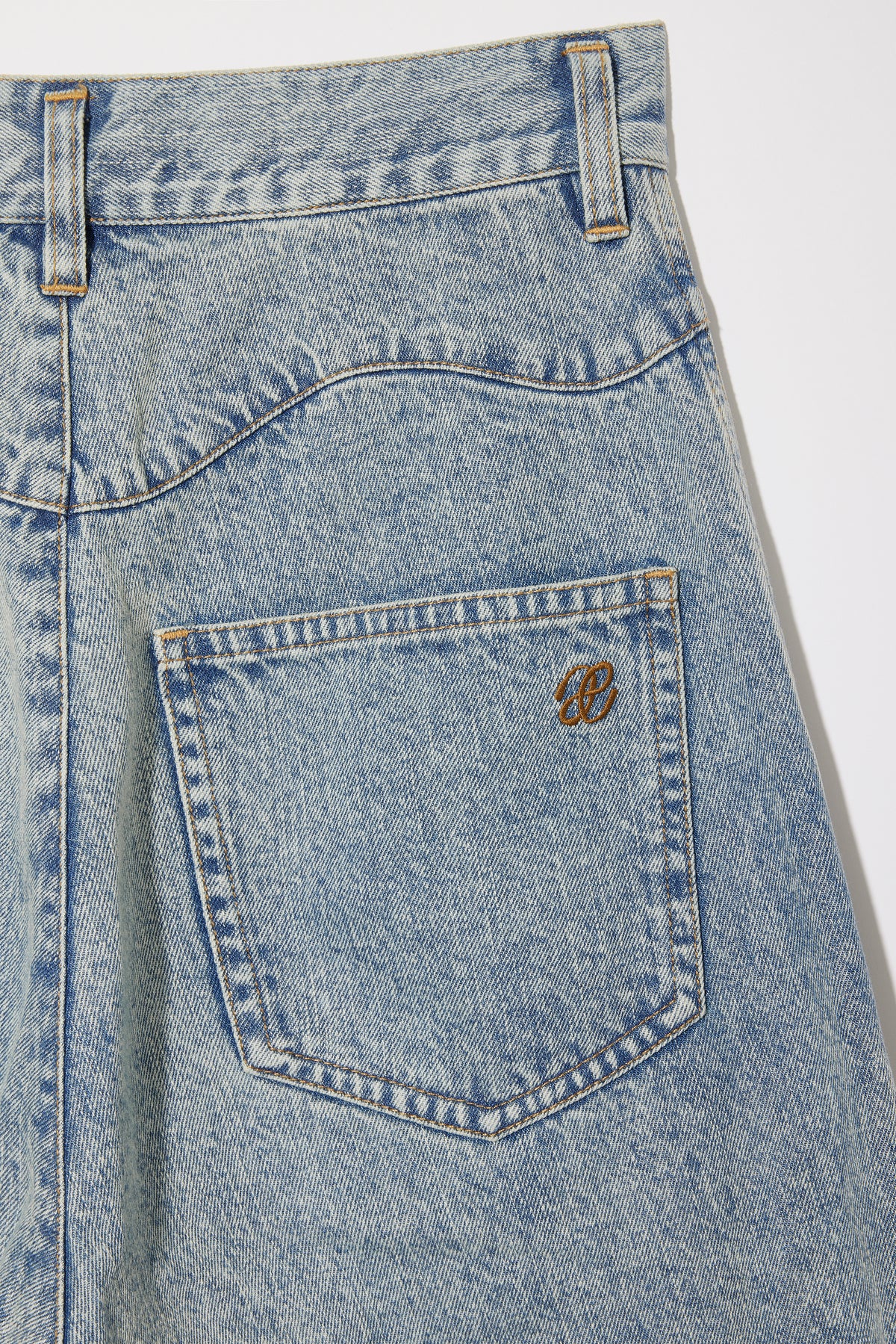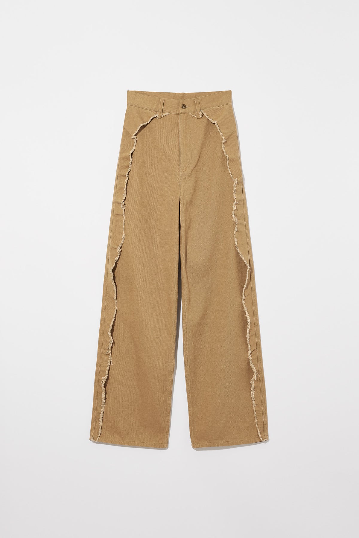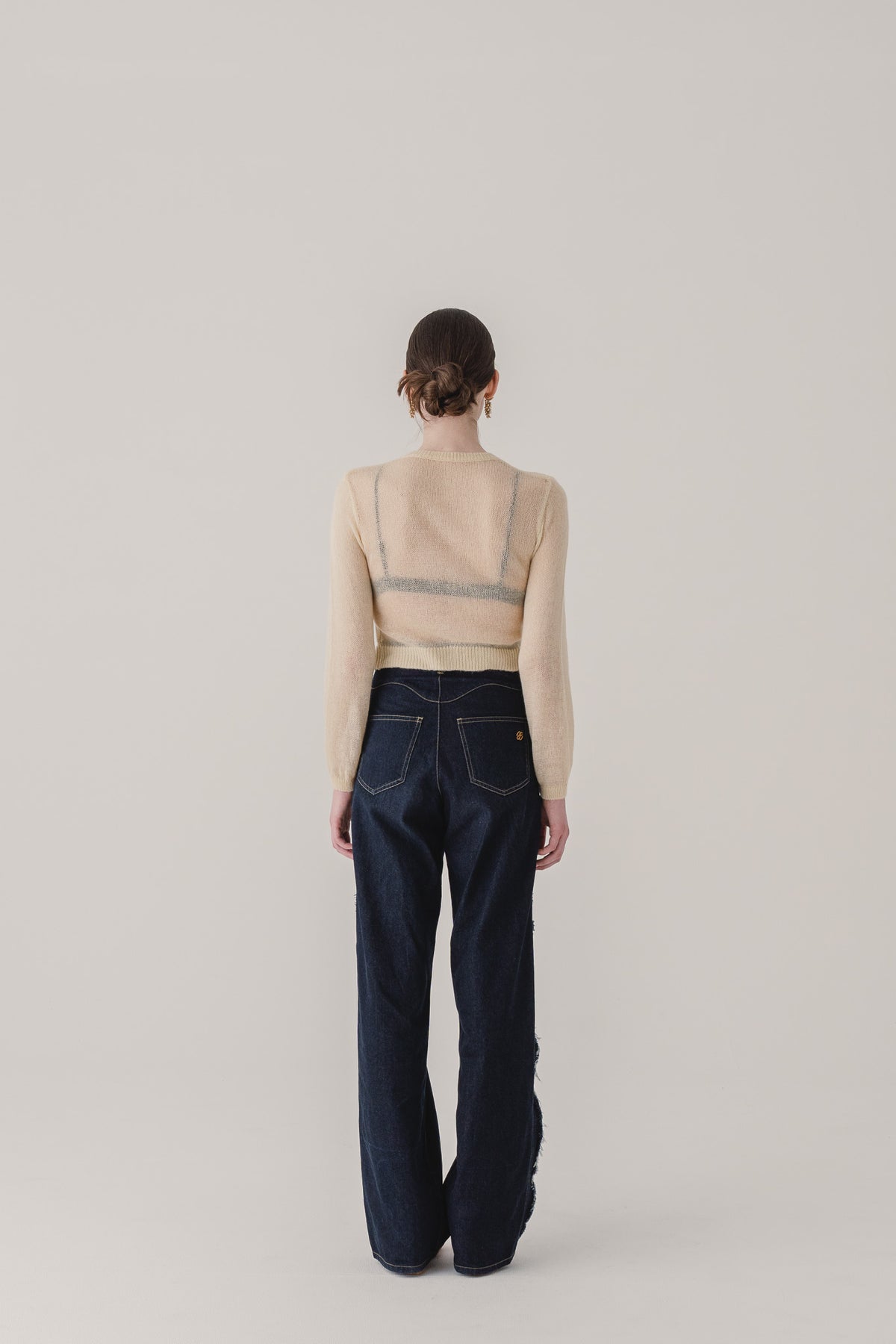 インディゴ染めの最も古い中心地はインドであったとされている。そこから着想を得て、 ラッフルフリルのディテールをカジュアルに落とし込んだデニムパンツ。 フリルディティールの繊細なシルエットを再現するために、何度も修正を重ね、試行錯誤しました。Èaphiらしい柔らかい雰囲気を感じさせつつ、新しいムードも纏った1枚に仕上げました。