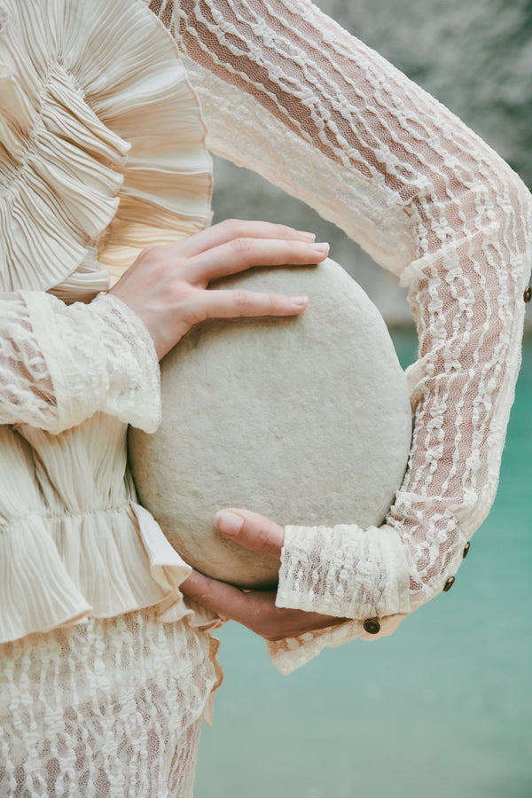 チュールレースの柔らかな存在感と、Èaphiらしいウェーブラインが、滝の流れのように美しく揺れ動く。
