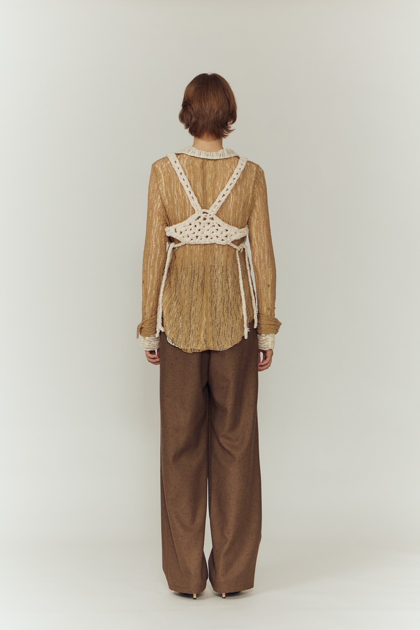 袖のスリットは、水が静かに落ちるような自然な動きを生み、表情豊かな一着に。
