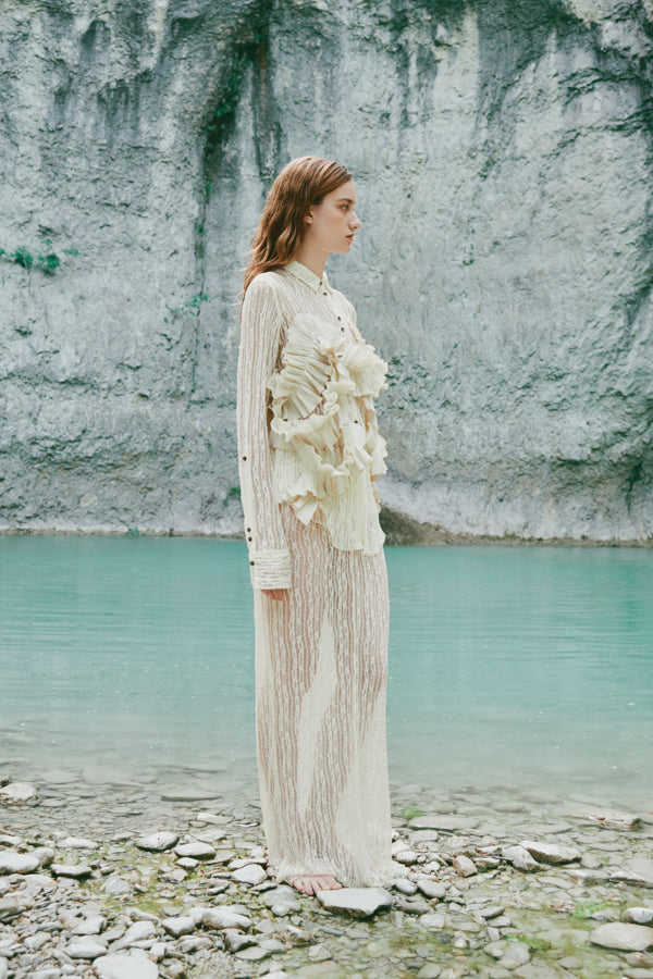 見た目の可憐さだけでなく、ギャザーとフリルのリズムが