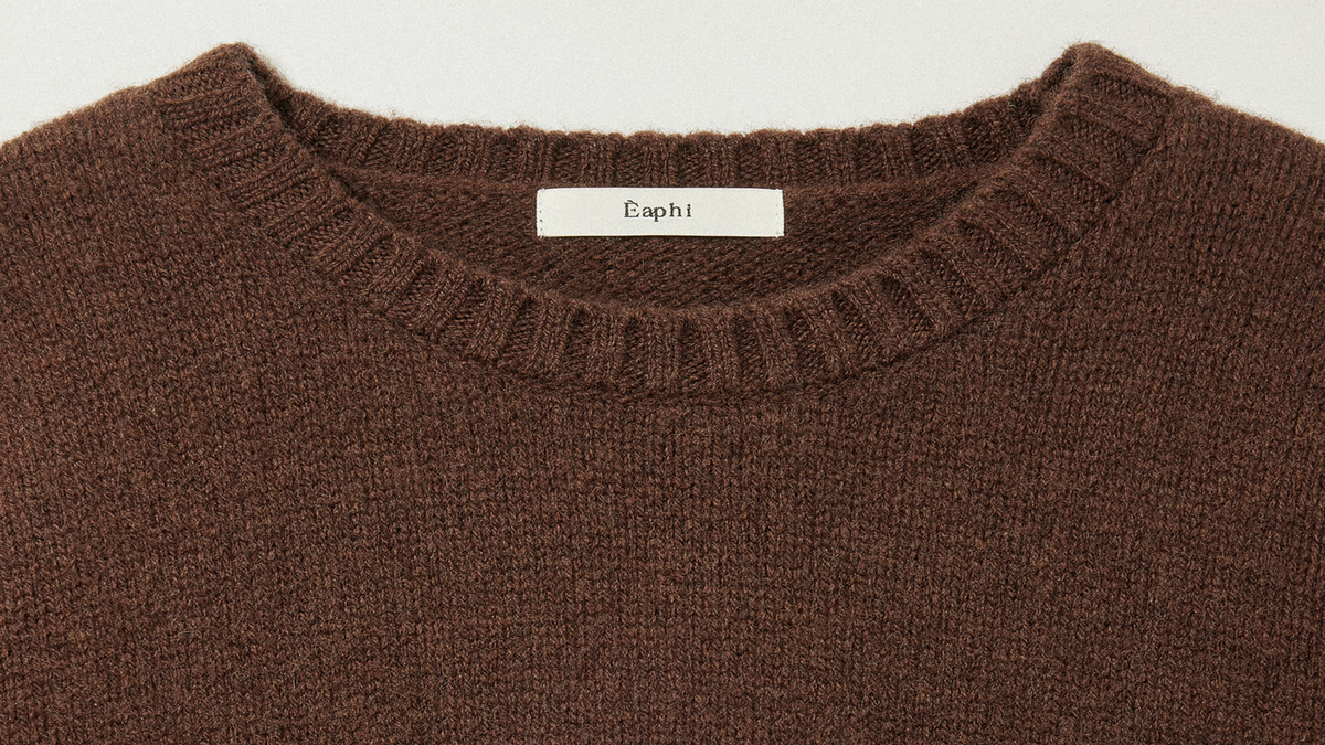 ウール90%・ヤク毛10%の高品質糸を用い、柔らかさと優れた保温性を両立させたプルオーバー。